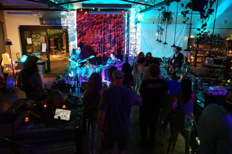 Summer of 2022 was a time of particular transition for Regular Humans, a band marked by transition. Nick and I had just played Chomp Santa Fe the month before, each of us playing drums with our feet. For this show, we recruited Jake Montiel and Justin Pucila of Brother Sound and Free Range Buddhas to play lead guitar and drums, respectively. Nick played bass, the only show in our career together where that happened.